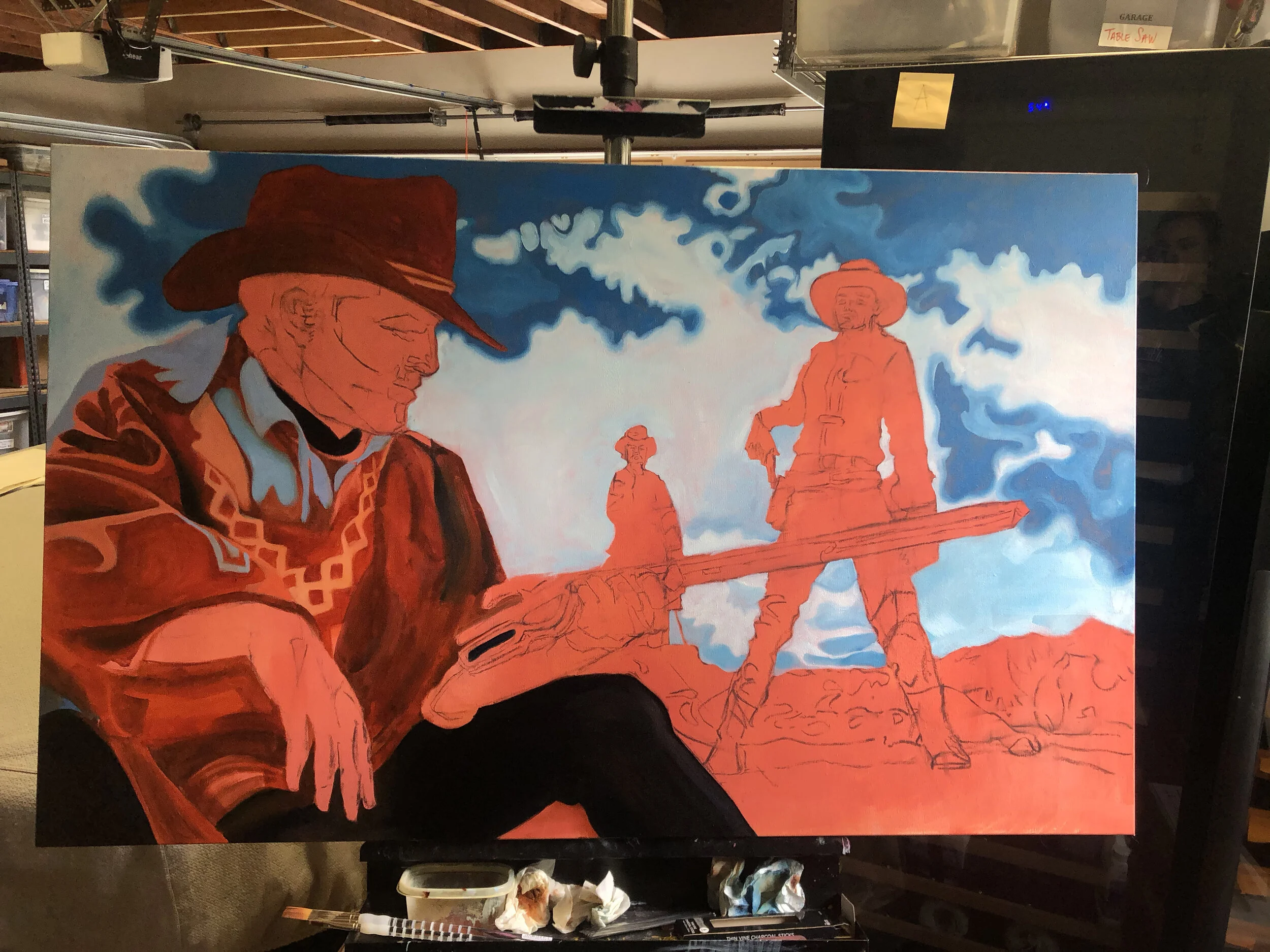 My newest series is called Encounters. It’s a mini series comprised of four paintings depicting encounters which are dramatized through the use of classic film genres.